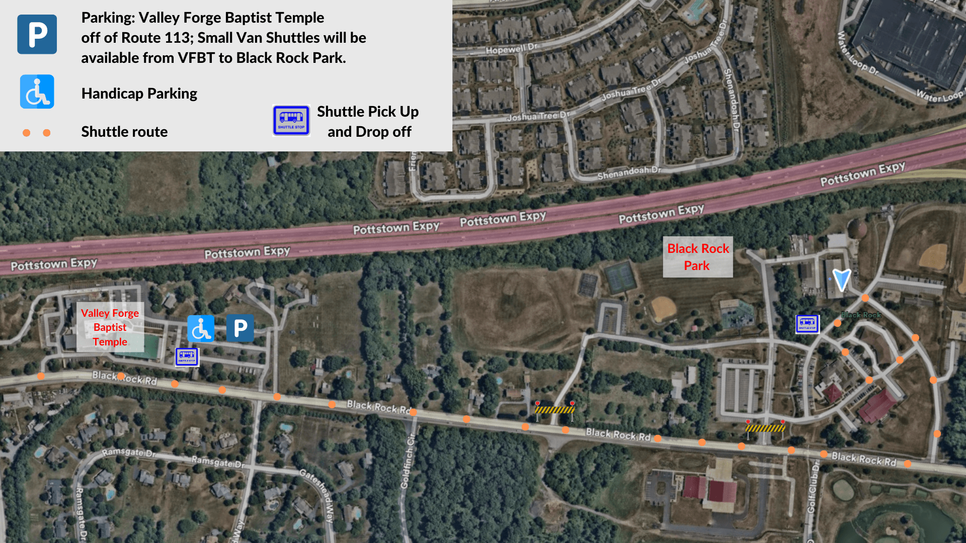 - Valley Forge Baptist Temple (We encourage attendees with handicap needs to park at this location and use the handicap accessible vans available)